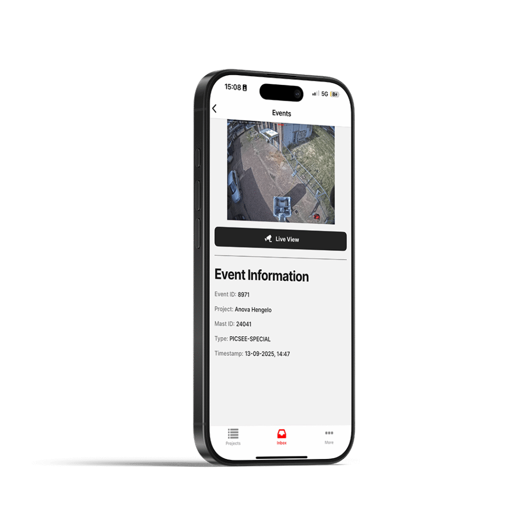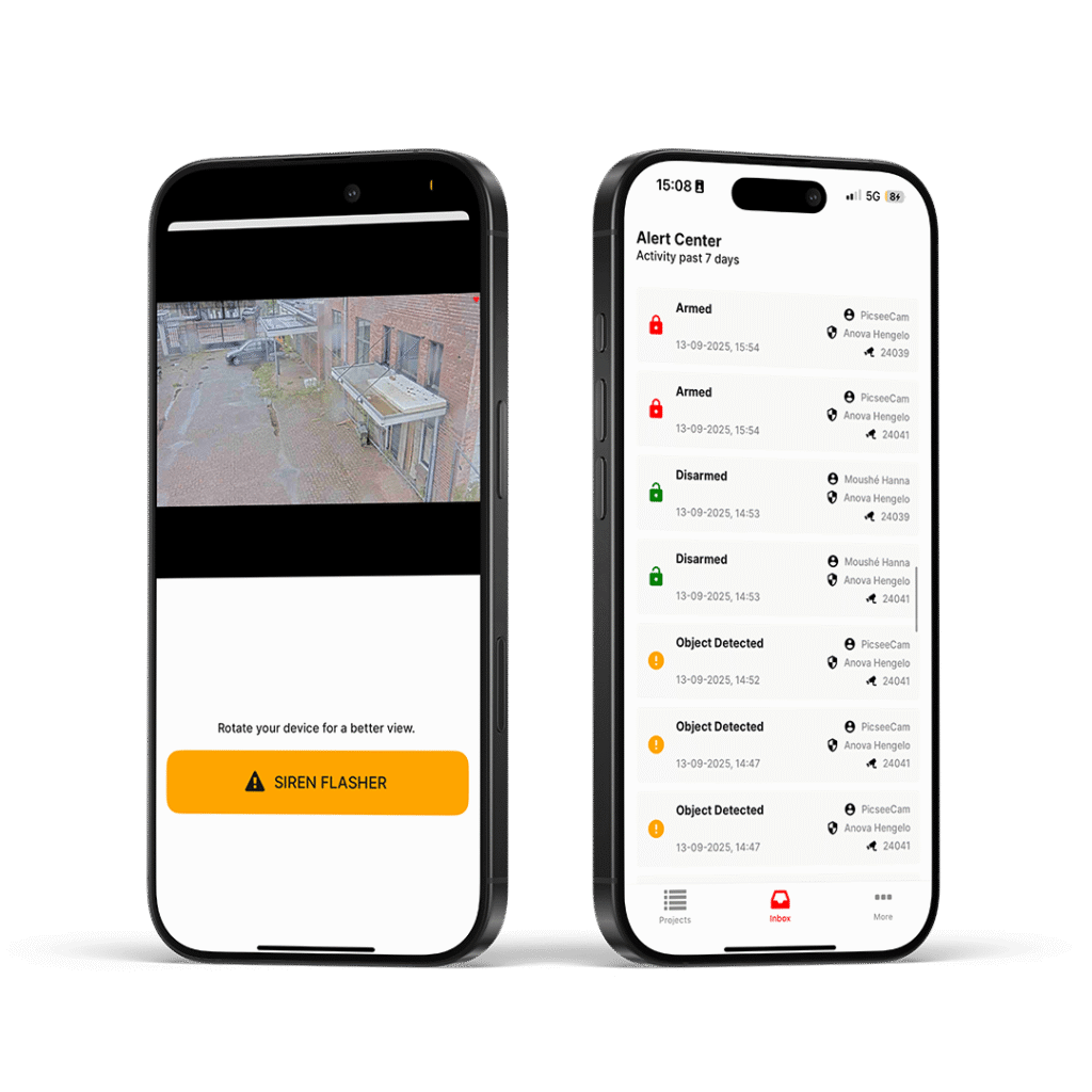 PICSEE gaat verder dan alleen cameratoezicht. De mobiele cameramasten zijn uitgerust met hoogwaardige Axis camera’s die onder alle omstandigheden scherpe beelden leveren. Via een directe verbinding met de meldkamer wordt iedere dreiging onmiddellijk opgepakt, terwijl slimme AI-technologie onnodige meldingen voorkomt. Met de app heb je altijd toegang tot live beelden, ontvang je direct meldingen op je telefoon en kun je zelfs tegen indringers spreken. Op afstand verzorgen wij bovendien alle updates en onderhoud, zodat jouw beveiliging betrouwbaar, veilig en zorgeloos in gebruik blijft.