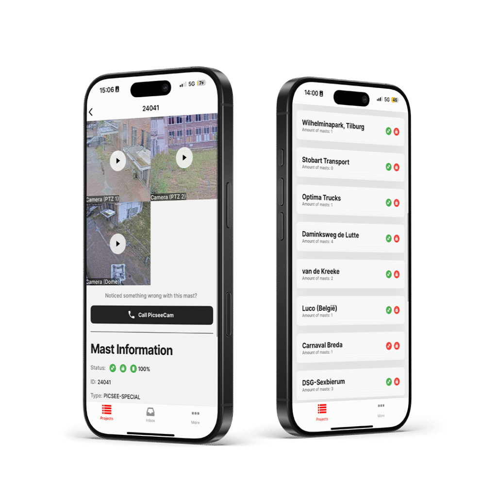 Mobiele camerabewaking van PICSEE geeft je de zekerheid van continue veiligheid, precies waar dat nodig is. Onze mobiele cameramasten zijn direct inzetbaar en kunnen autonoom beveiligen, waardoor ze ideaal zijn voor tijdelijke locaties zoals bouwplaatsen, evenementen of afgelegen terreinen. Via de PICSEE App ontvang je meldingen, kijk je live mee en heb je altijd inzicht in belangrijke gegevens, zoals de stroomtoevoer. Dankzij de flexibele opzet kies je voor een oplossing die met jouw project meebeweegt, zonder hoge kosten of langdurige installaties, en bepaal je zelf of je kiest voor koop, huur of lease.